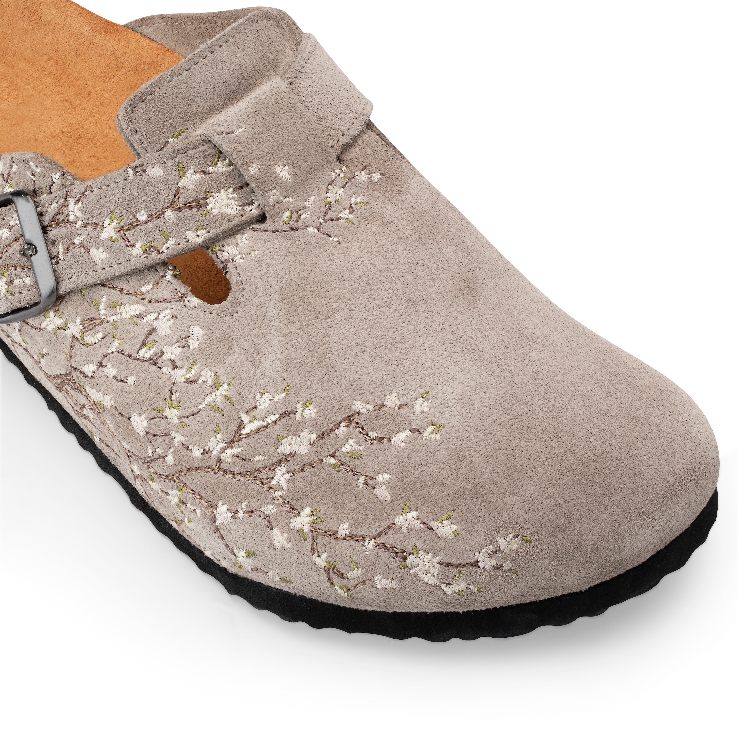 suede leather / leather inner-lining / cork footpad with eva outsole / embroidered side panels and belt / fits true to size / manufactured in Türkiye